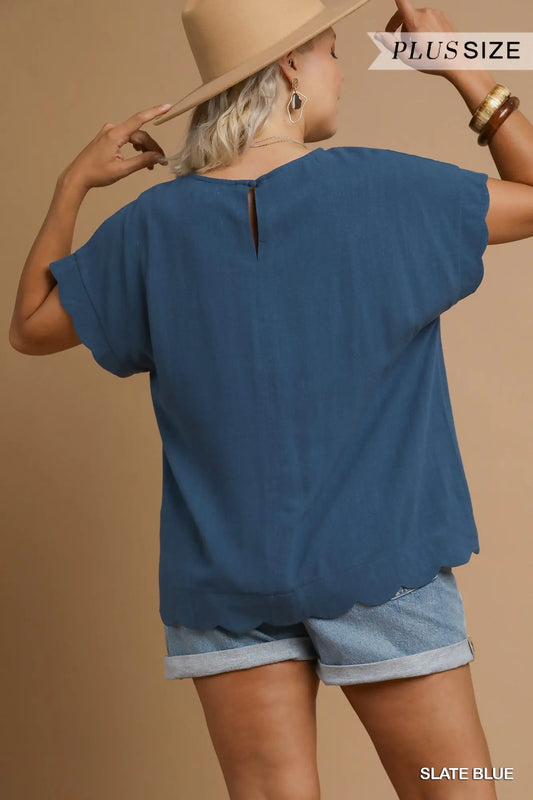 Scalloped Top in Slate Blue NATURAL FIBERS